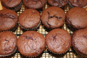Preheat oven to 350. Beat cake mix, pudding mix, sour cream, water, oil and eggs on low for 1 minute then on medium for 2 minutes until well combined. Fold in chips by hand. Scoop batter into lined muffin cups, filling 3/4 full. (I use my Pampered Chef large scoop which fills each cup the same amount and helps them to bake better. You could also use an ice cream scoop.) Bake until muffins spring back when lightly touched and toothpick inserted in center comes out clean, about 23 – 27 minutes. Let cool 5 minutes before removing from pan.