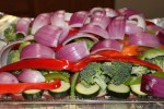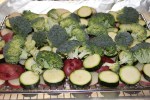 You will need any desired combination of vegetables, this time we used red potatoes, zucchini, broccoli, red and green peppers, red onion