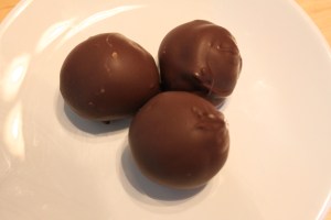 1 1/2 pounds dark chocolate candy coating, coarsely chopped (I used a 1 1/4 pound package of chocolate flavored almond bark and had some left over after dipping the truffles)