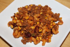 2 Stir in salsa, tomato sauce and water. Heat to boiling. Stir in macaroni and corn and beans if using. Reduce heat, cover and simmer 12 – 15 minutes, stirring occasionally, until macaroni is tender.