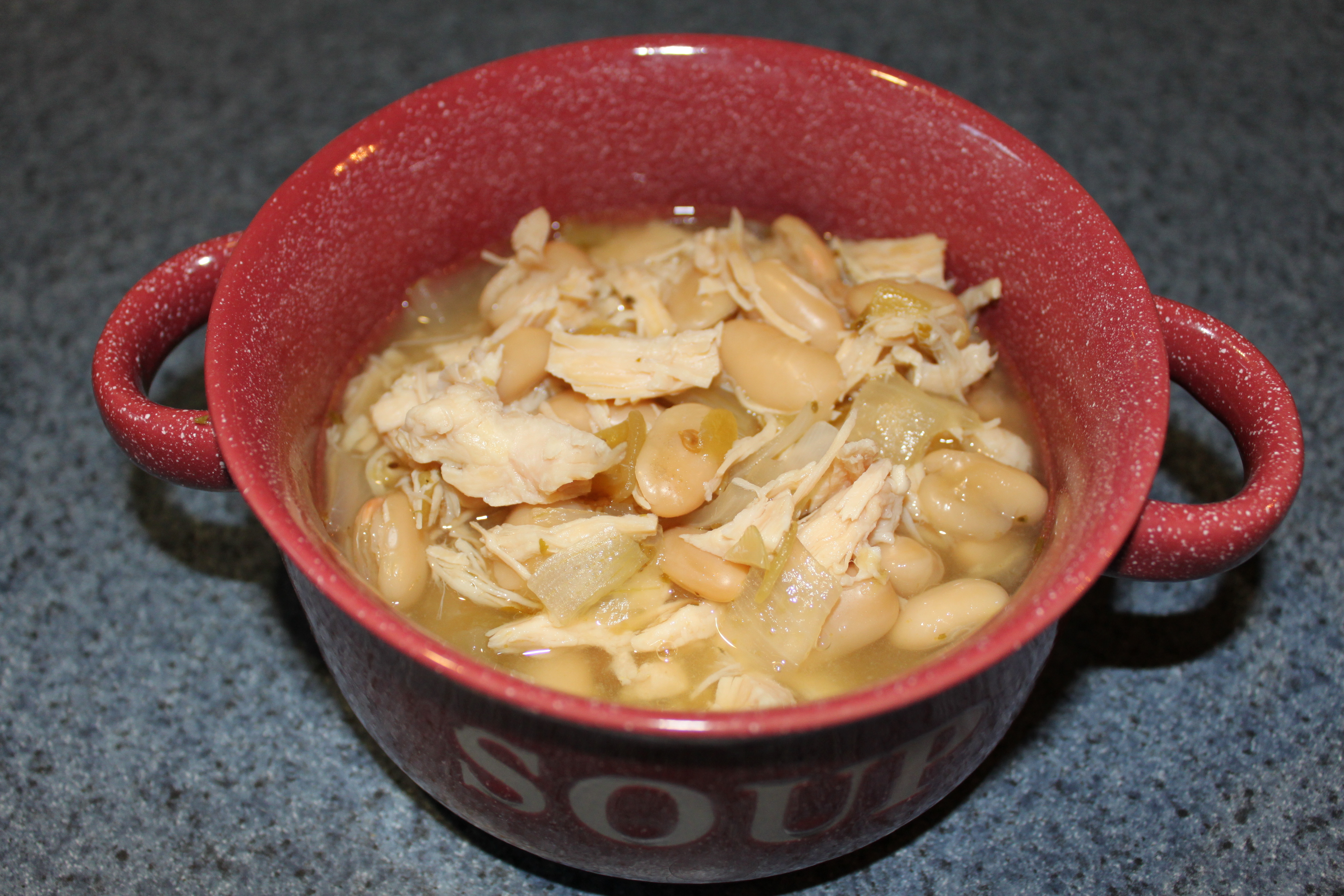 1 In a saucepan, coated with cooking spray, saute chicken and onion until juices run clear, drain if desired. Stir in broth, chilies, garlic, oregano, cilantro and cayenne. Bring to a boil. Reduce heat, simmer, uncovered, for 30 minutes.