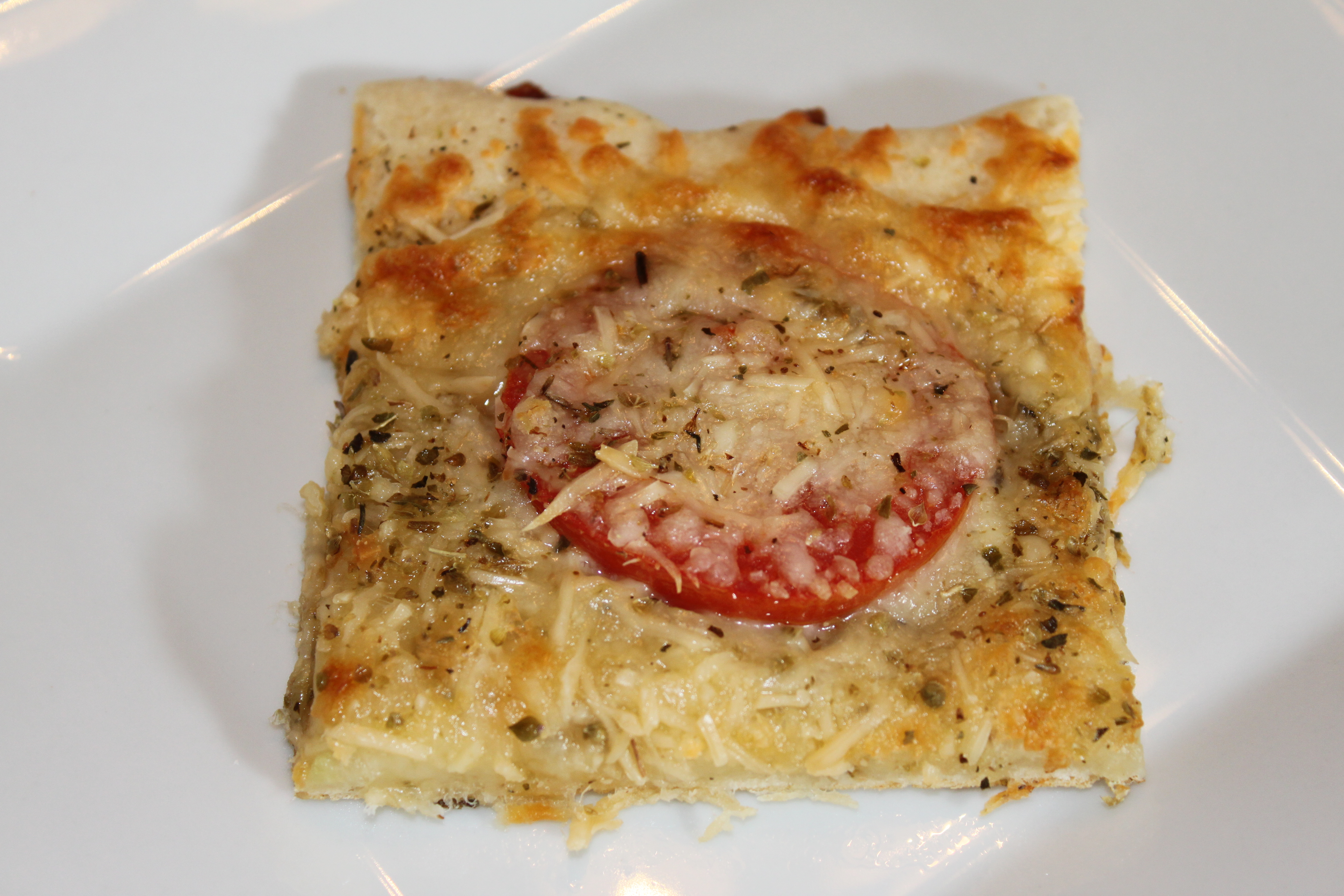 Heat oven to 375. Roll out crust on stone. (You can use any shape stone you like, I always use my jelly roll or large bar pan.) Press garlic over crust and spread evenly. Grate half the Romano or Parmesan over crust. Sprinkle with half the mozzarella and 1 teaspoon of oregano. Thinly slice tomatoes and arrange in single layer over cheese. Top with remaining mozzarella and oregano. Grate remaining Romano or Parmesan over top. Bake 25 – 28 minutes or until crust is golden brown and cheese is bubbly.