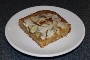 3 Spread almond paste mixture over partially baked base. Sprinkle with 1/2 cup almonds. Bake 15 – 20 minutes longer or until filling is set (filling will puff up during baking). Cool completely, about 1 hour.