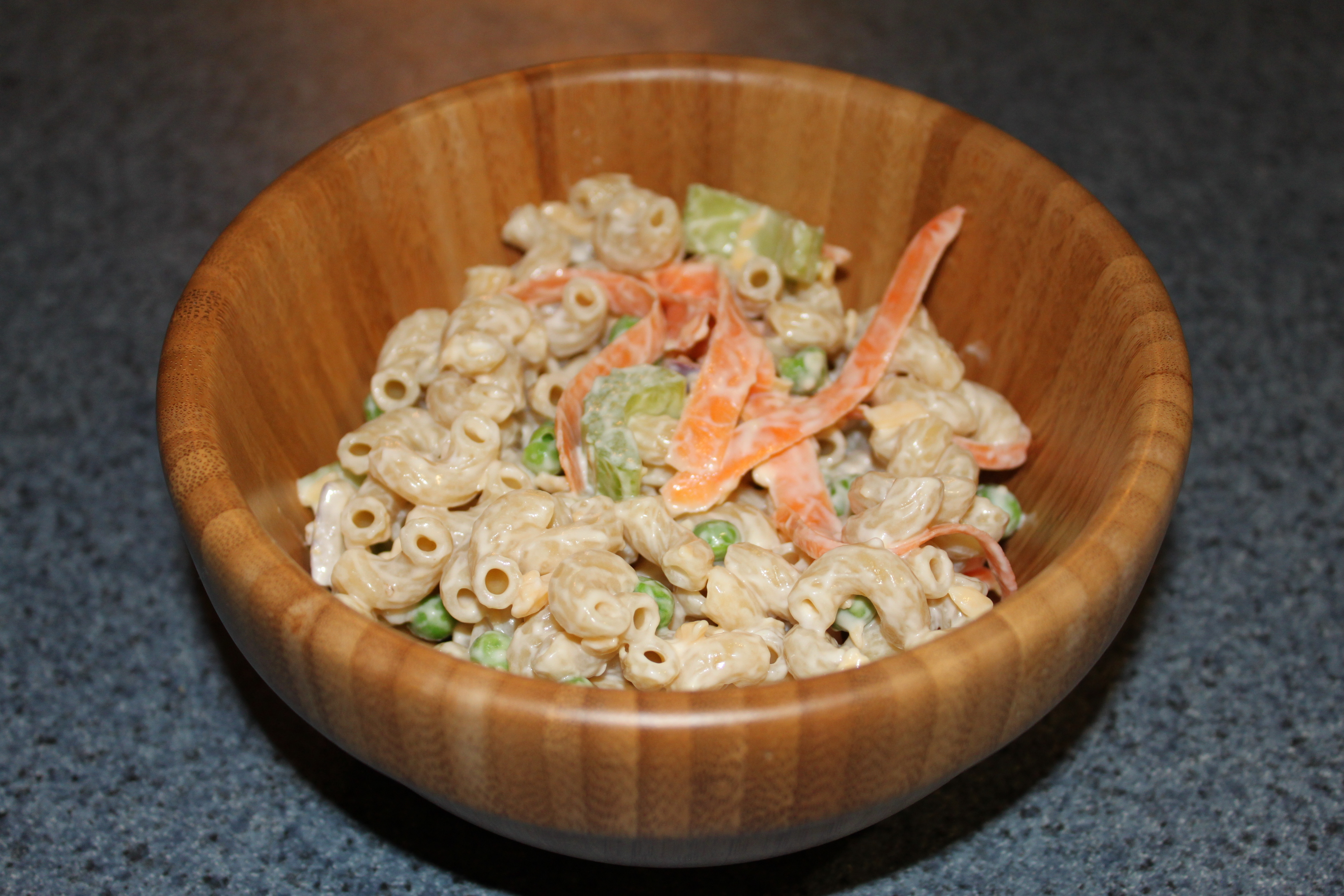 1 Cook pasta according to package directions. Drain and rinse pasta under cold running water until cold. Place pasta in large bowl. Add cheese, peas, celery, carrot and onion and mix gently.