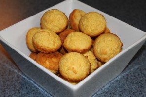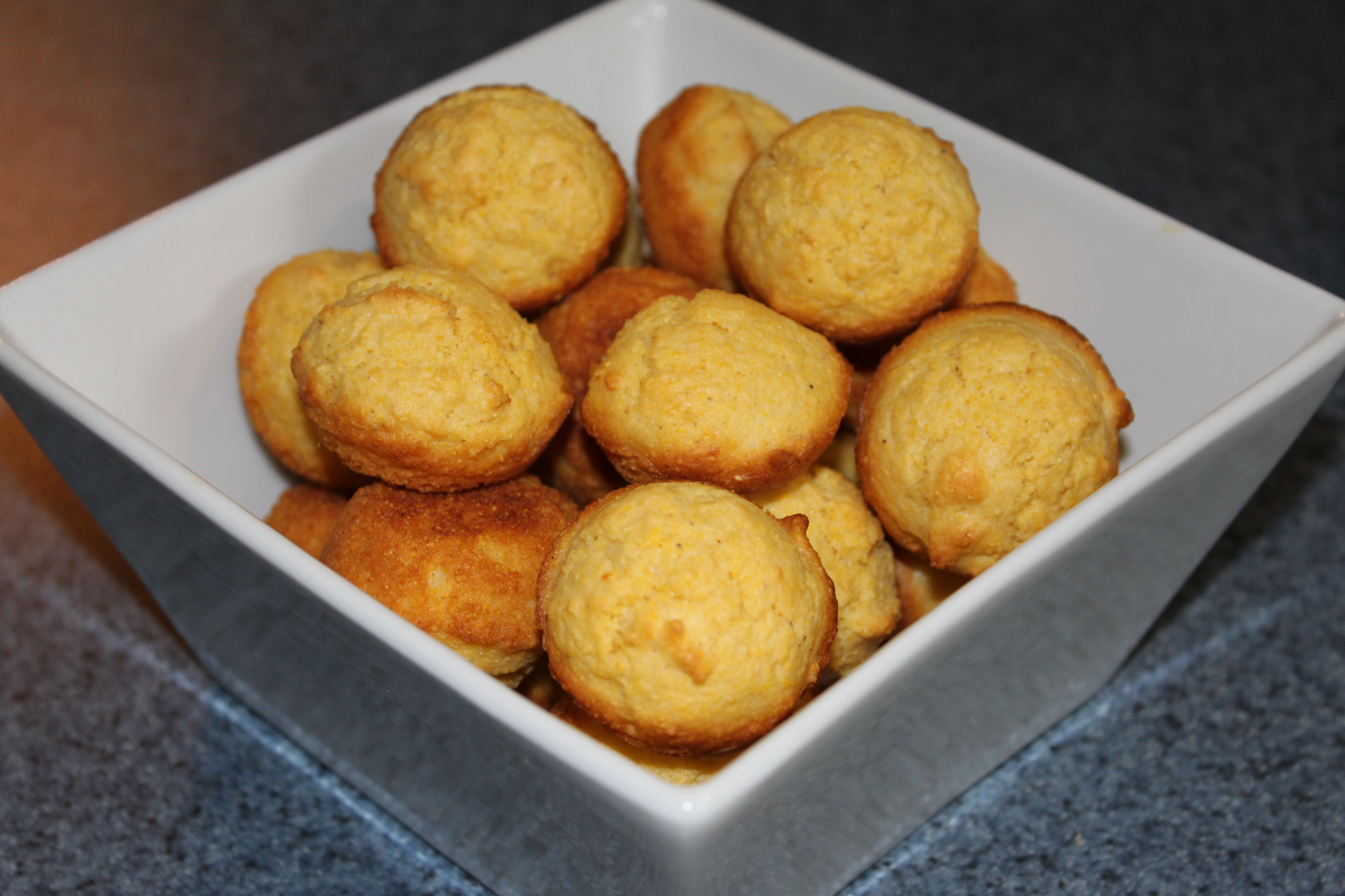 4 Scoop 1 tablespoon of batter into each cup. Bake 10 minutes, or until hush puppies are firm to the touch and golden brown around edges.