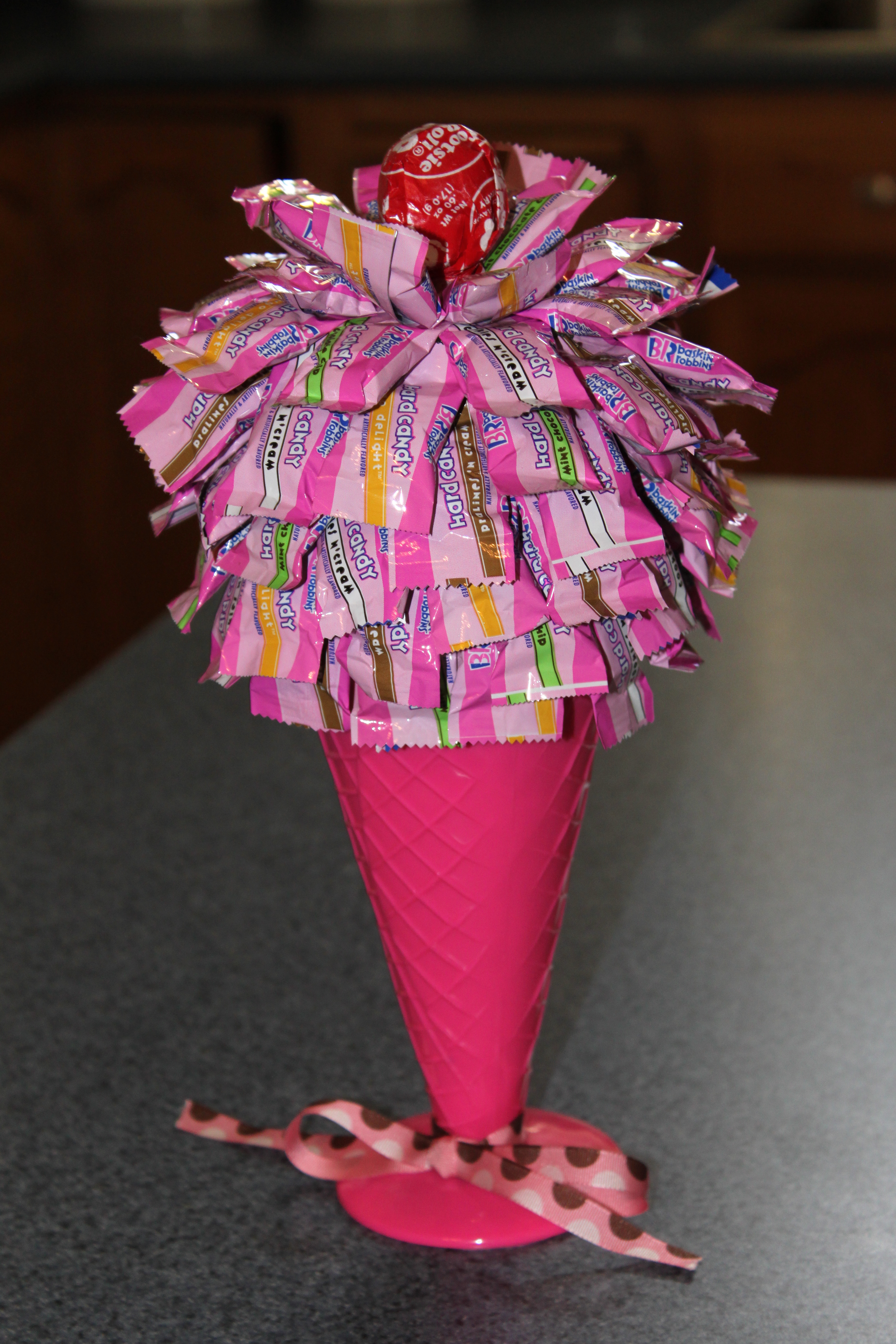 1 (1 pound) bag miniature Milky Way bars (we used about 3 bags Baskin Robbins hard candies, can’t remember what size bags they were, in various flavors – Mint Chocolate Chip, Mango Delight, Pralines and Cream and Cookies and Cream)