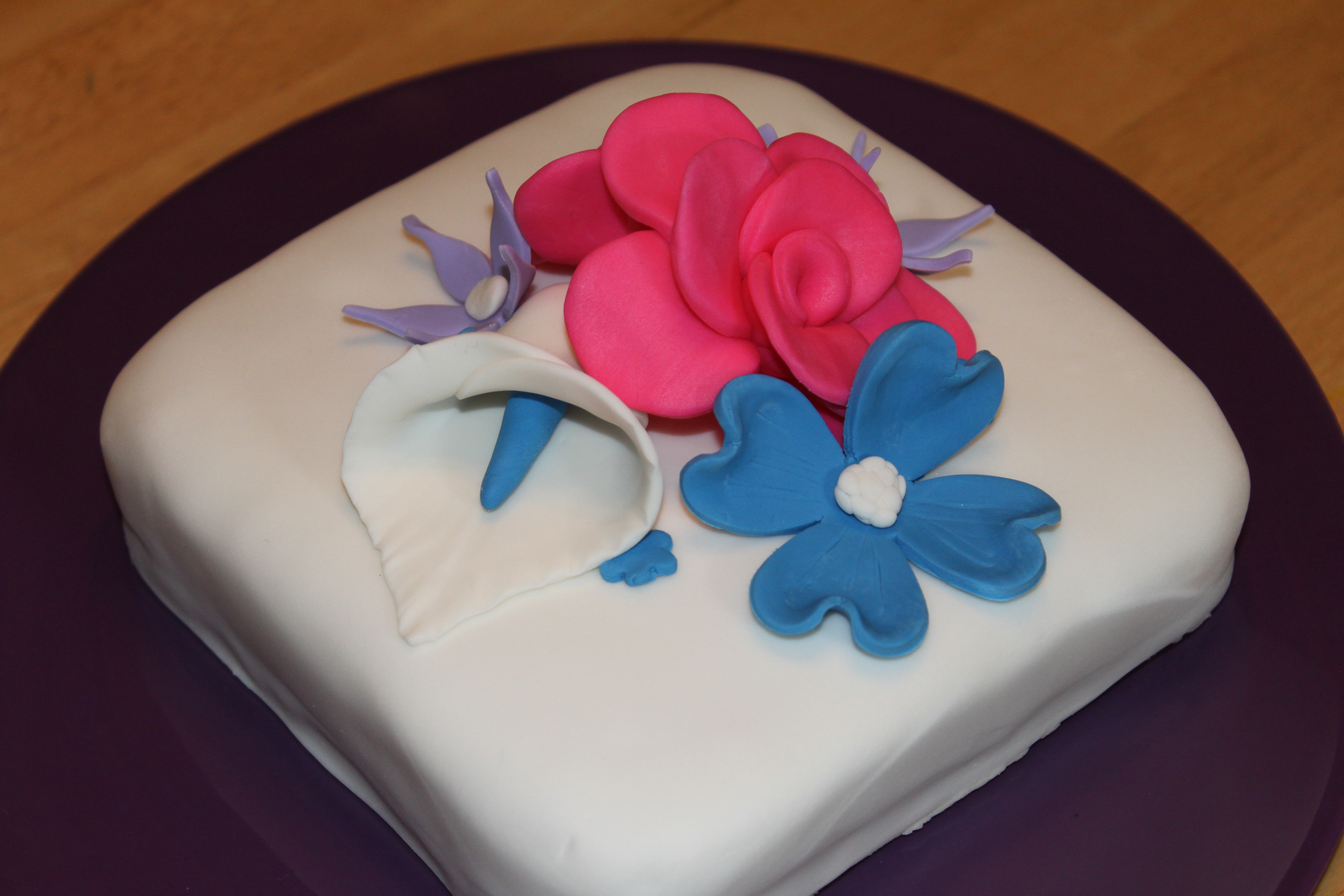 Last cake of the weekend! We already have 3 wedding cakes coming up this summer so we bought a new flower making kit because Courtney has some new flowers to learn how to do for some of those cakes. She wanted to practice so when we were all done with the other cakes we put this one together for her to practice on and then she took it babysitting to the Hansens for Bentley and Meadow and Jenn (Hi Jenn!) to munch on (as you might imagine, we have plenty of cake around here and don’t really need more!). It was a little vanilla cake with vanilla frosting and vanilla fondant which Courtney said tasted great and she is a chocolate girl like me so that’s high praise! She did great on the flowers, the lily especially is really pretty. She’ll be practicing more so that we can be ready for the wedding cakes!