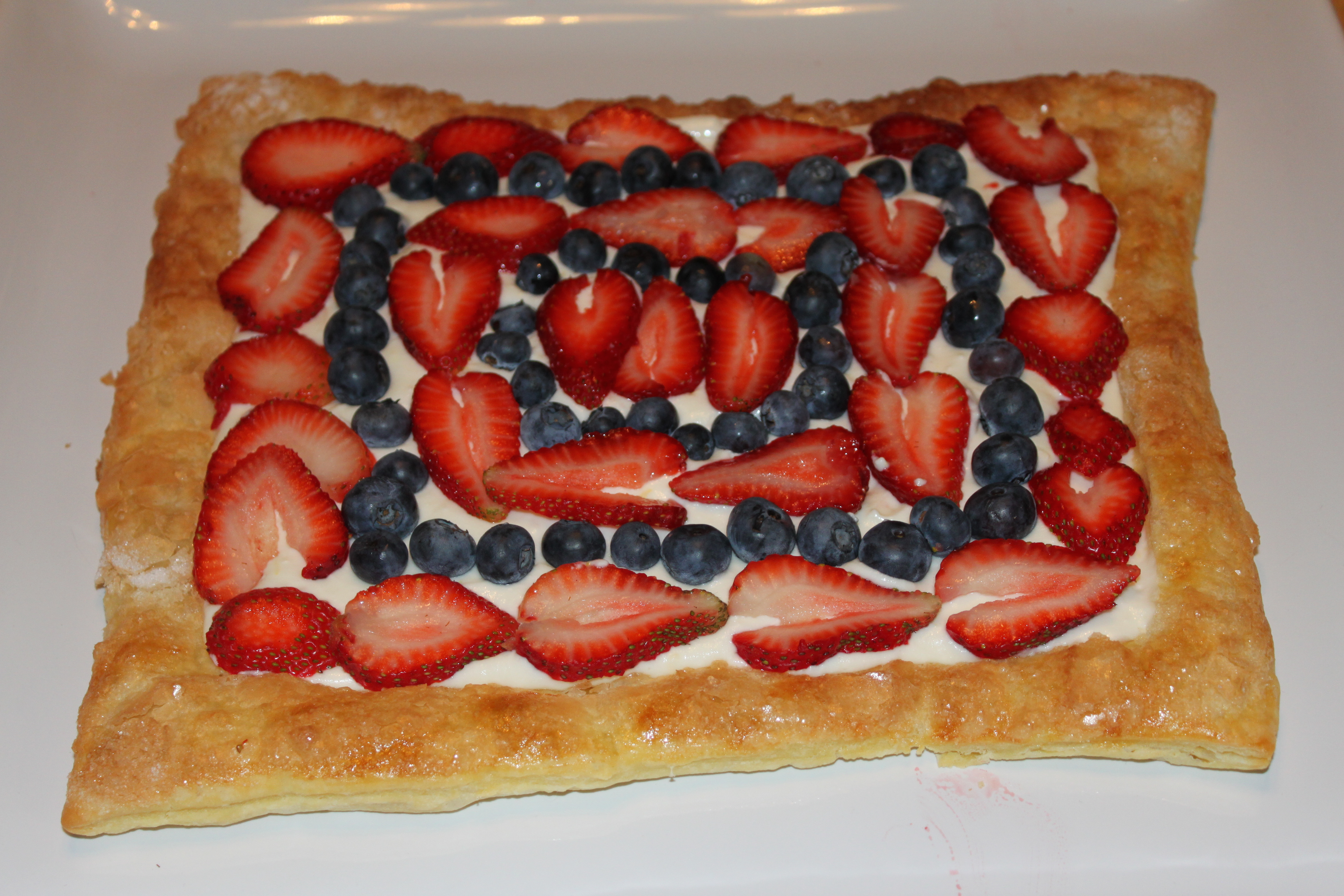 Another dessert for the family 4th of July dinner. This one is from http://www.realsimple.com. I doubled the filling ingredients so that there would be enough to cover the pastry and I used both strawberries and blueberries to top the tart.