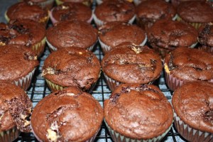 4 Scoop batter into liners. Bake for about 20 minutes, until well risen and firm to the touch.