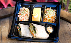The second was the “Mediterranean Vegetarian” which consisted of marinated grilled vegetables wrapped in a whole wheat wrap with roasted garlic hummus, raw zucchini and squash spaghettini with first press lemon infused olive oil, vegetable couscous with toasted coriander vinaigrette and lemon layer cake.