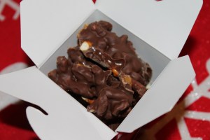 This recipe comes from http://www.kraftfoods.com and was super simple and quick to put together. It’s pictured here in one of those little take out containers that I got at Target. Yummy little neighbor gift!