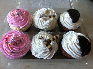 I just got back last night from spending 2 weeks with my parents (my dad had open heart surgery after suffering a heart attack in November so I went to try and help out a bit) and while I was there it was my birthday. My mom asked what I wanted for my bday and since I have been wanting to try the ice cream cupcakes from Cold Stone, I told her that’s what I wanted instead of a birthday cake and it was a good choice because they were delicious! I highly recommend them! They were $10 for the 6 which I thought was a pretty good deal since regular cupcakes in all these trendy cupcakes shops are over $2 each. Here is a description of each of the flavors: