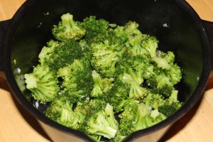 1 Microwave broccoli and water in covered bowl on high for 5 – 6 minutes or til crisp tender.