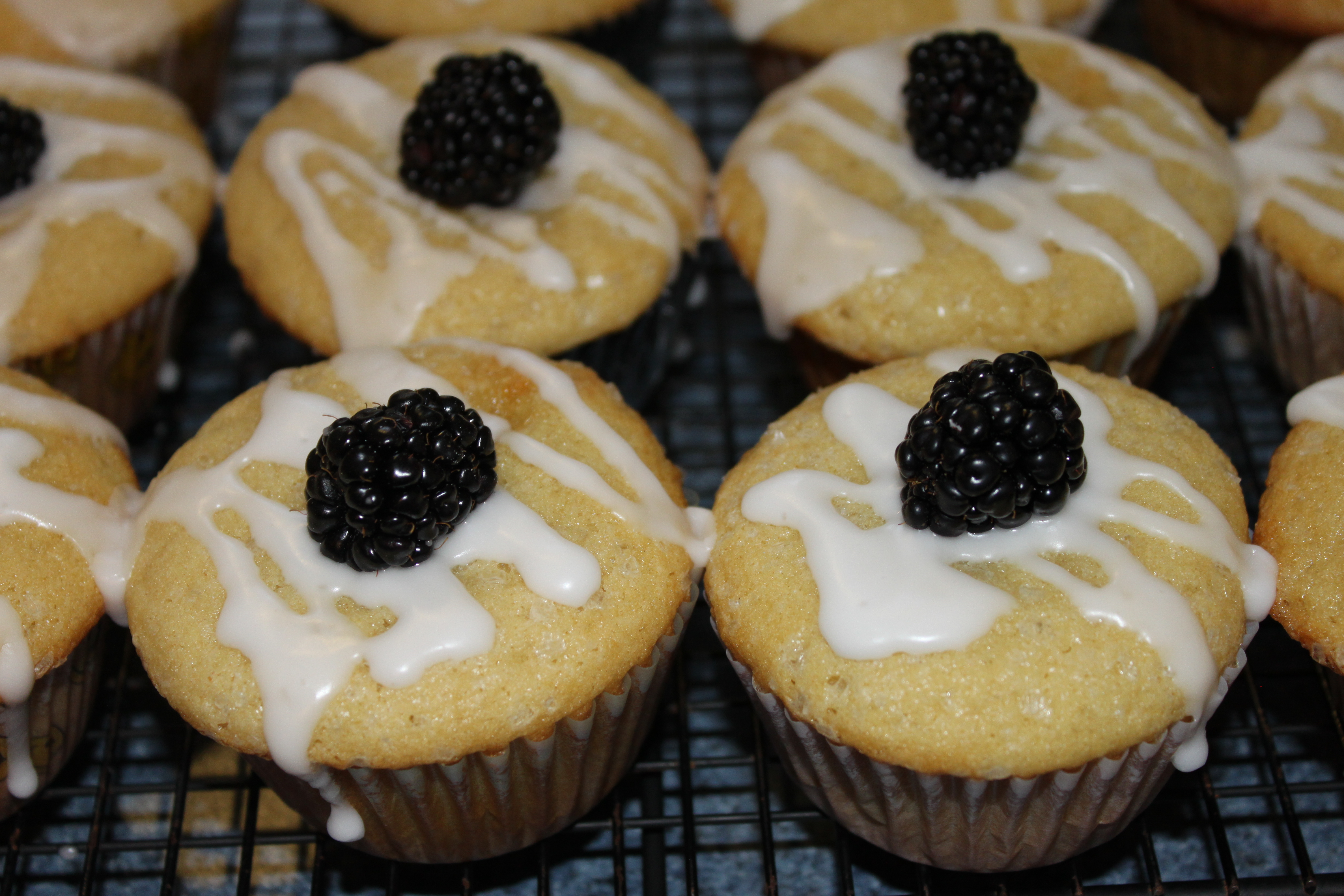I got a new cookbook called “The Cupcake Bible” which is full of awesome cupcakes recipes but I thought I’d try this one first since we got some blackberries in our Bountiful Basket. The original recipe is called “Tangy Raspberry Minis” but I had blackberries and wanted to make full size cupcakes instead of mini cupcakes so I changed the title. The mini ones came out cuter (at least in their picture) because the berry that you put on the top of the cupcake before you bake it didn’t sink down in like mine did ( which is why I put another berry on top) but it stayed right on the top peeking through the cupcakes and looking really cute, oh well! These are the other neighbor treats I made yesterday. It was a good baking day!