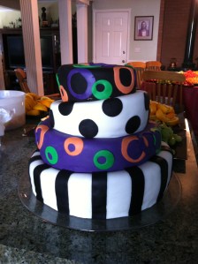 I’ve been working so much that we haven’t really been able to make many cakes this year but my friend Charles at work got engaged so I asked him if we could help out and make the cake and they said yes so here it is! They had a whimsical color scheme with lots of colors so we tried to get all of those colors on the cake and I think it came out pretty good especially given that it was a topsy turvy cake. The bottom and top layers are Funfetti cake and then the second layer is chocolate and the third layer down is brown sugar. Most of the fondant is Duff fondant from Michaels. Congratulations to Charles and Jyllian!