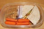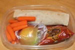 Crunchy peanut butter and 1/2 a sliced Fuji apple on a flour tortilla, baby carrots and a couple of graham cracker and Nutella sandwiches