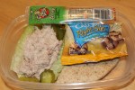 Tuna salad on lettuce with pickles, cheese stick, 1/2 whole wheat Pita flat bread, a package of 100 calorie fudge stripe cookies