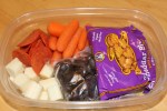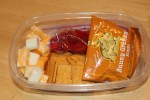 Cheese cubes, pepperoni, cheddar bunny crackers, baby carrots, Jr Mints