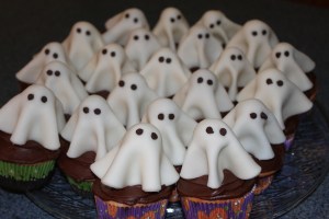 Here’s a cute and pretty easy Halloween cupcake idea from the Ladies Home Journal website.  These are for the Neighborhood Halloween party tomorrow night.