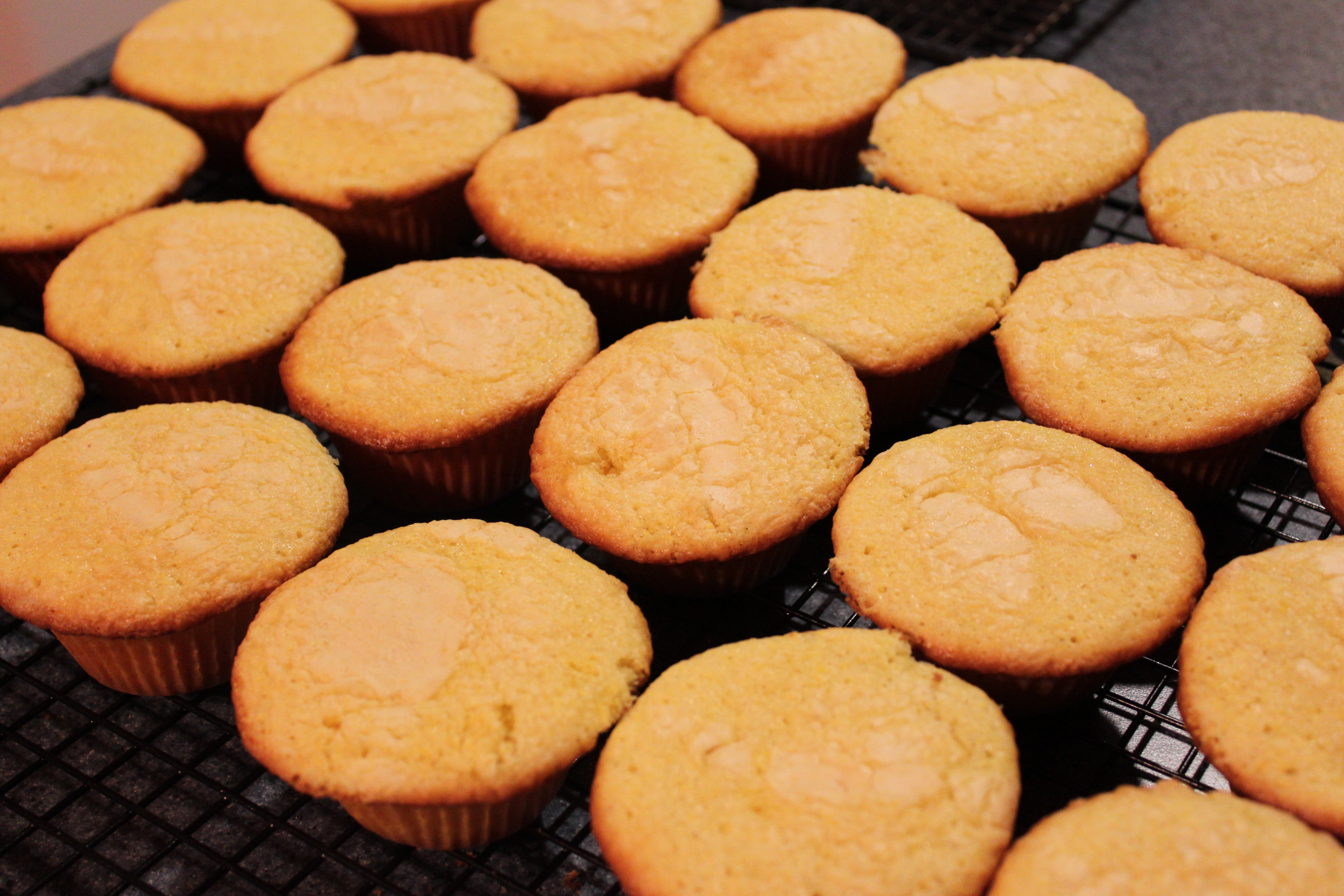 Usually I make chili and cornbread on Halloween but Courtney and her fiance Jaren might have to work on Halloween so she asked if I would make it early so we had it for dinner last night. Decided to try both a new cornbread recipe and a new chili recipe (see next post) and they both came out great. I also decided to do corn muffins instead of a pan of cornbread and this recipe made 3 dozen muffins so seriously if you live near me and have a craving for some corn muffins, stop on by and I’ll give them away to whoever shows up until they’re gone! (I’m totally serious here people!) This recipe comes from a blog called “The Sisters Dish” and was really easy and really delicious! The batter ended up being very fluffy so I filled the muffin pans too full using a regular amount for muffins so if you decide to make muffins, use a little less batter than you usually would for each one so that they don’t overflow.