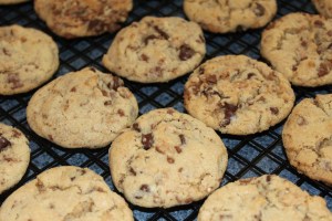 Cookie day yesterday! This recipe comes from a blog called “Love and Olive Oil”. I was in the mood for cookies with chocolate chips and toffee so googled that and found this. They are perfect!