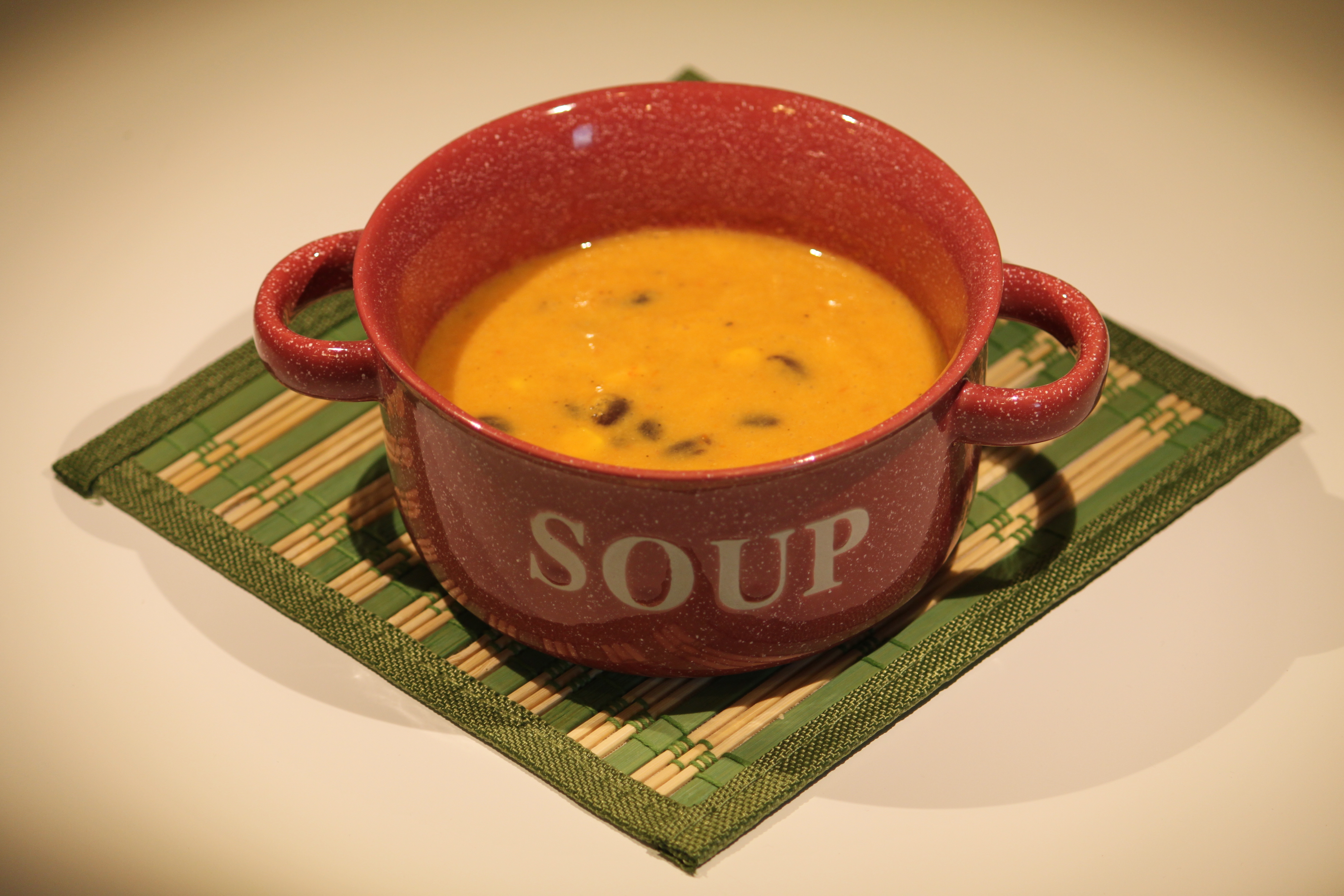 Add ingredients to jar in order listed and secure lid. Select “soups” and serve. For more texture, pulse in additional ingredients such as 1/2 cup tortilla chips, black beans, corn kernels, cheese, chicken or fresh tomato. (I added a can of black beans and a can of corn.) I thought this soup was a little blah so I added 1 teaspoon of pepper and also 1 teaspoon of this garlic seasoning mix that I have from Alyson’s Pantry. It was still a little blah so I told the boys to eat it with some salsa and/or sour cream to jazz it up. It wasn’t terrible just so-so.