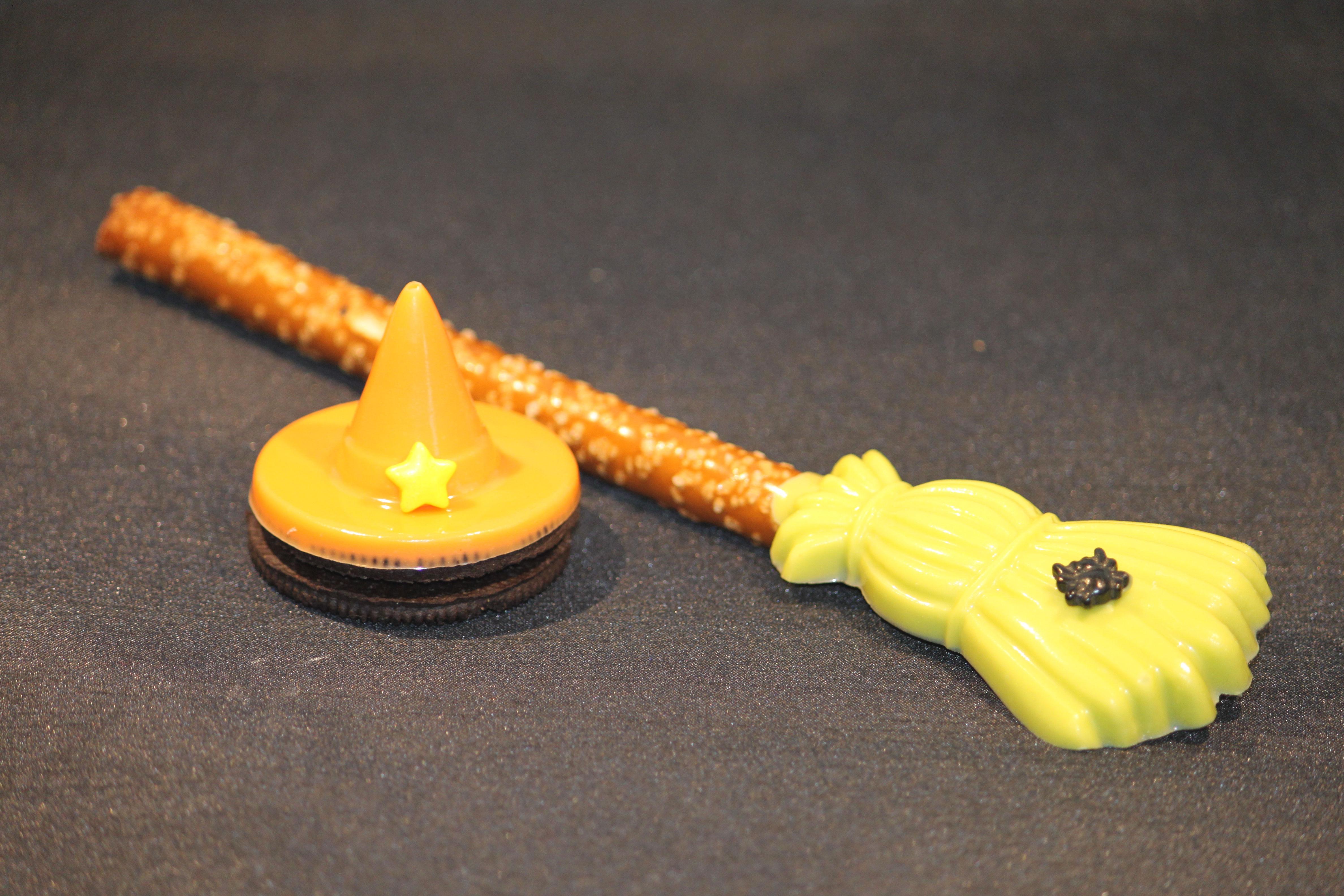 These are my favorite set of treats from treat days! I found this kit at Michaels and couldn’t resist. The kit came with everything you need to make these guys and said it was exclusive to Michaels. The broomsticks are made just like the mummies, by pouring the melted chocolate in the mold, setting in a pretzel and the letting it sit in the fridge. The candy bug gets attached with some melted chocolate after it is set and comes out of the fridge. The hat is made by pouring the melted chocolate in the mold and then setting an Oreo on top and then letting set in the fridge. The little star gets attached with melted chocolate after it is set as well. So cute! If you’re looking for a cute and easy last minute treat idea, head on over to Michaels and look for this kit. It only came with a small amount of chocolate, maybe enough to make 4 each, but I just bought extra bags so that I could make more. Happy Halloween!