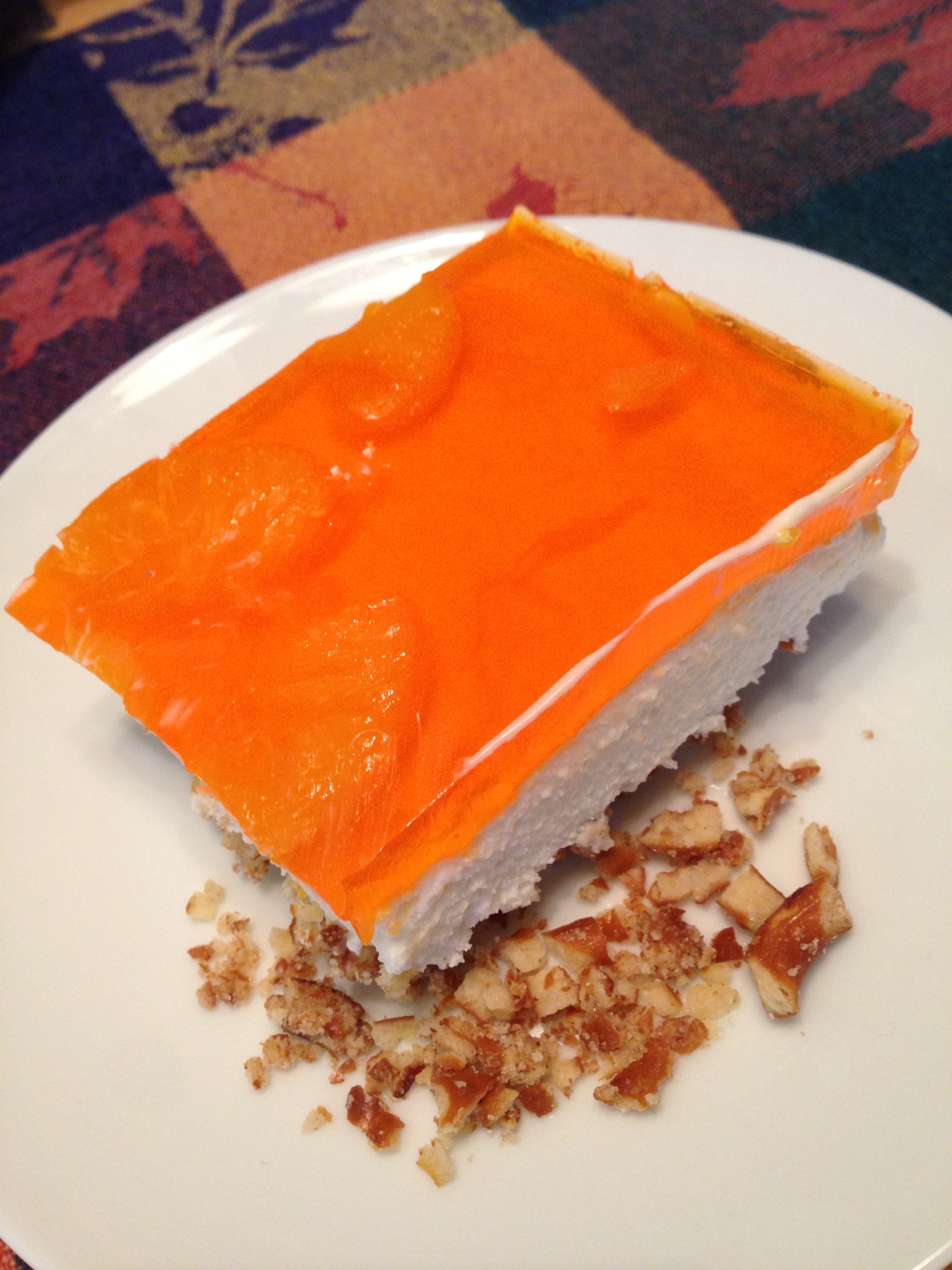 Another new addition to our Thanksgiving menu. I tried this before one year but didn’t wait patiently for the jello to set a bit before I poured in on there and it just seeped to the bottom and made a soggy mess so this time I waited for the jello to cool and set a bit before pouring it on and I also made sure that the cream cheese layer was sealed all the way around the edges without any gaps for the jello to sneak through. This is a “Six Sisters’ Stuff” recipe and I’ve made it before with strawberries, recipe here, and will make it again with raspberries probably for Christmas at Courtney’s request. Everybody really likes it, so far in any flavor.