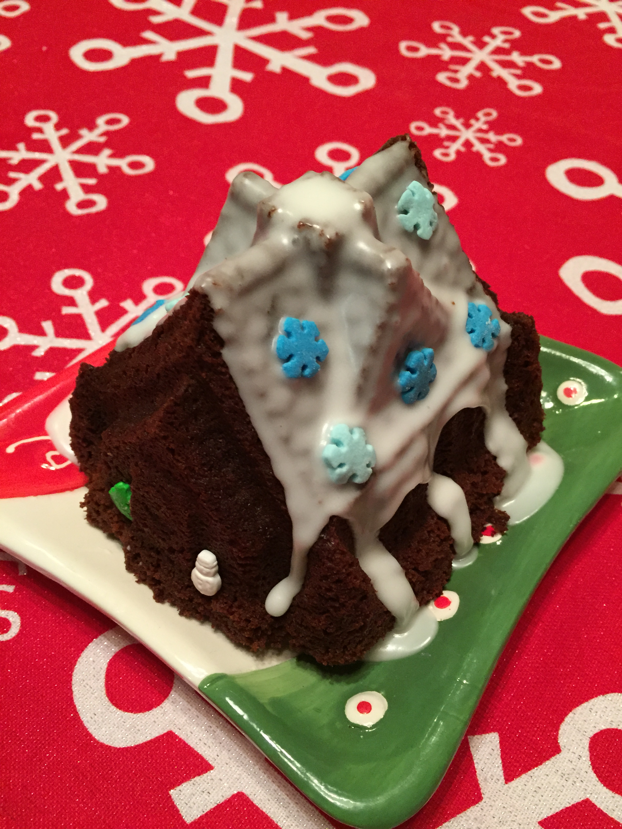 This gingerbread cake recipe came with the Nordic Ware pan.  It said it would fill up the double house pan two times but I made the two houses and the Christmas tree instead and also a little tiny cake for Bob cause he loves gingerbread and I never make it.  He gave it two thumbs up!