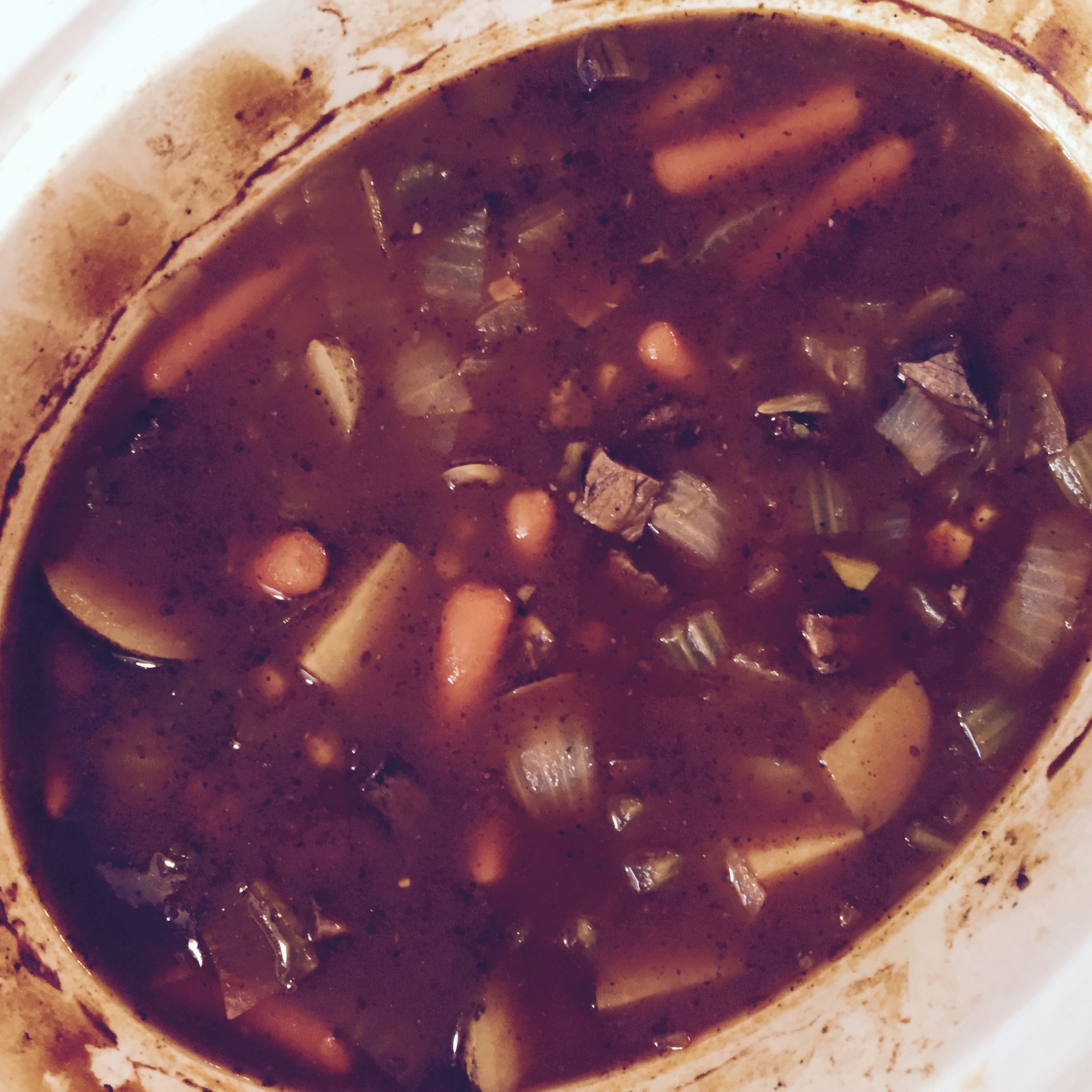 Bob made some steak for dinner on Sunday and it was really tough so he was getting ready to toss it but I told him to save it and I would make some stew out of it and it would probably soften up after being in a crock pot all day and it did! This recipe comes from “Family Fresh Meals” and was easy and delicious, a perfect winter dinner.