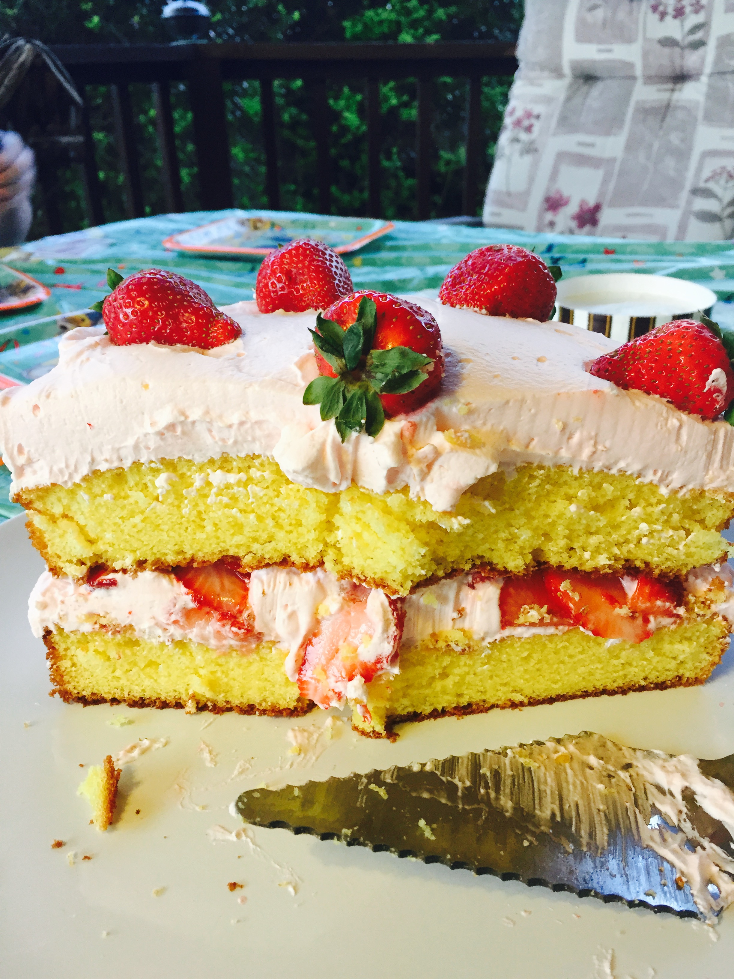 Here is Bob’s birthday cake which was the perfect summery cake. Just a warning that the flavored whipping cream is really tart so if you don’t like tart then I would suggest cutting down on the flavoring. The recipe comes from “Lolly Jane”.