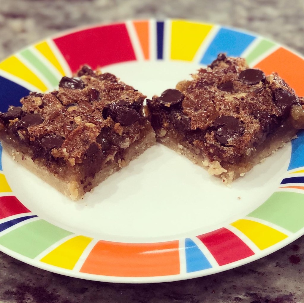 See? They look like pecan pie. Some more quarantine baking although we are getting out of the house a tiny bit more but still being careful. Weird times my friends, weird times. Fortunately there are are pecans and dark chocolate in the world to make the weird times a little easier to endure.