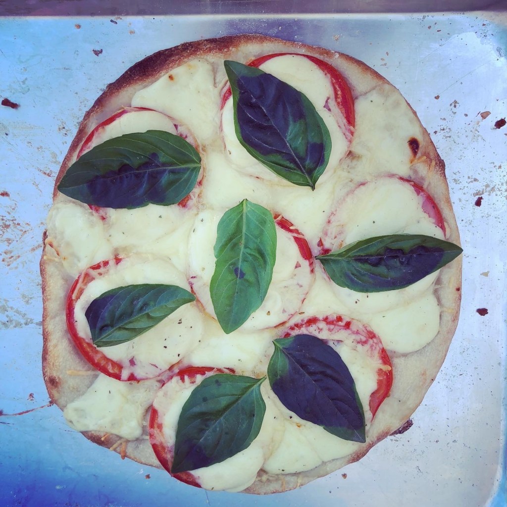 my favorite was this one here, Caprese without Sauce. I ate too much. The sourdough crust was awesome! Give it a try with your sourdough starter friends!