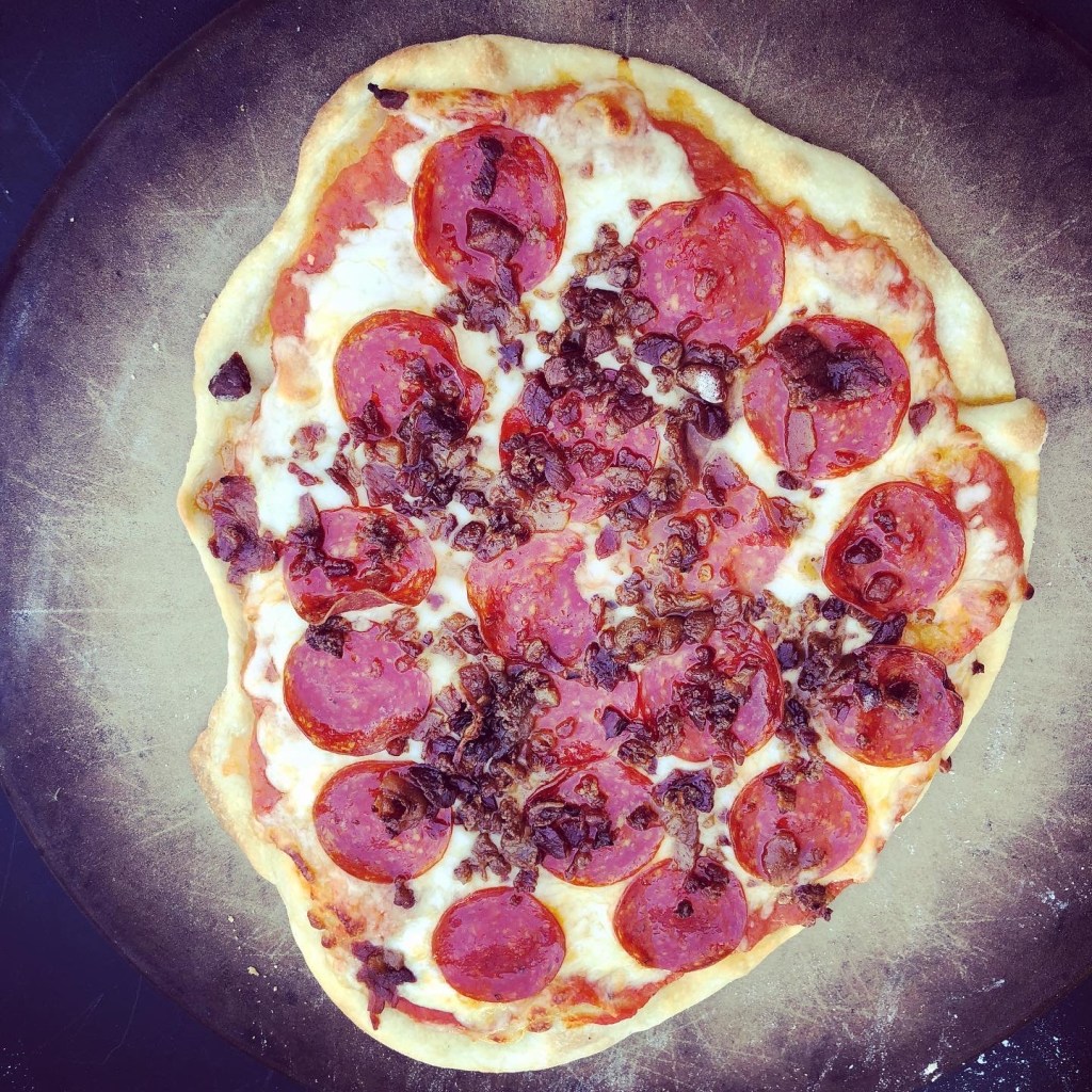 I decided to try out some sourdough pizza crust with my sourdough starter.