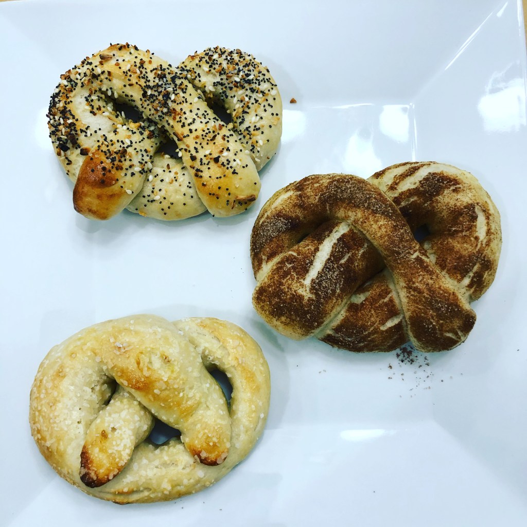 9 For the toppings, whisk together eggs and water. Brush over pretzels then top with desired toppings. Be generous with the toppings.
