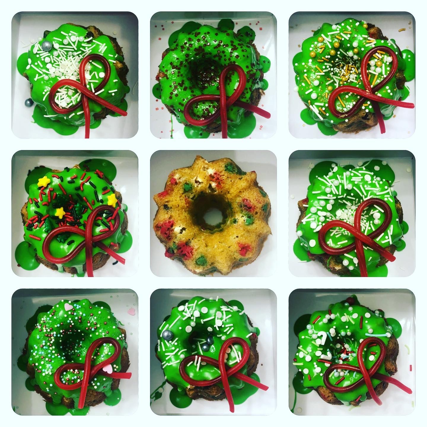 I made a glaze our of powdered sugar, vanilla, and milk then colored it green for my Christmas wreath theme.
