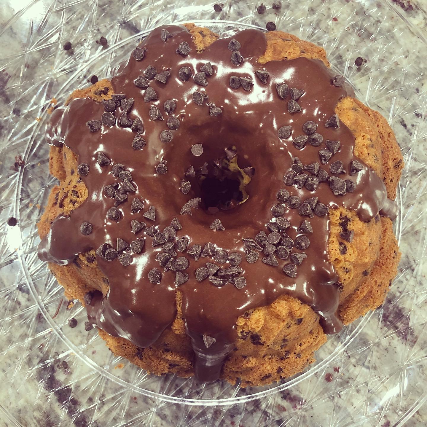 10 Whisk until smooth and drizzle over cake. Sprinkle with mini chocolate chips.