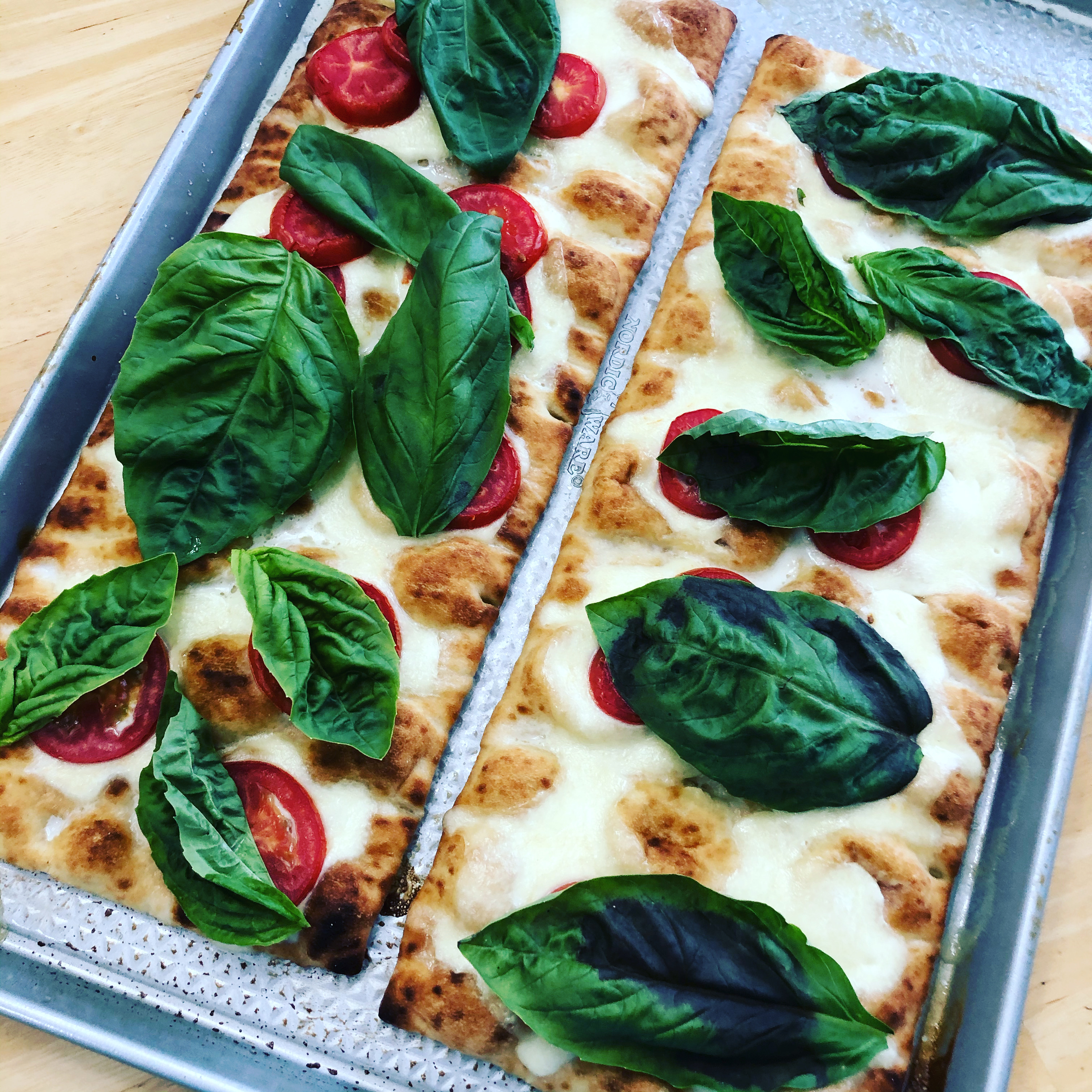 4 As soon as pizzas come out of the oven, top with fresh basil so it wilts a little onto the pizzas.