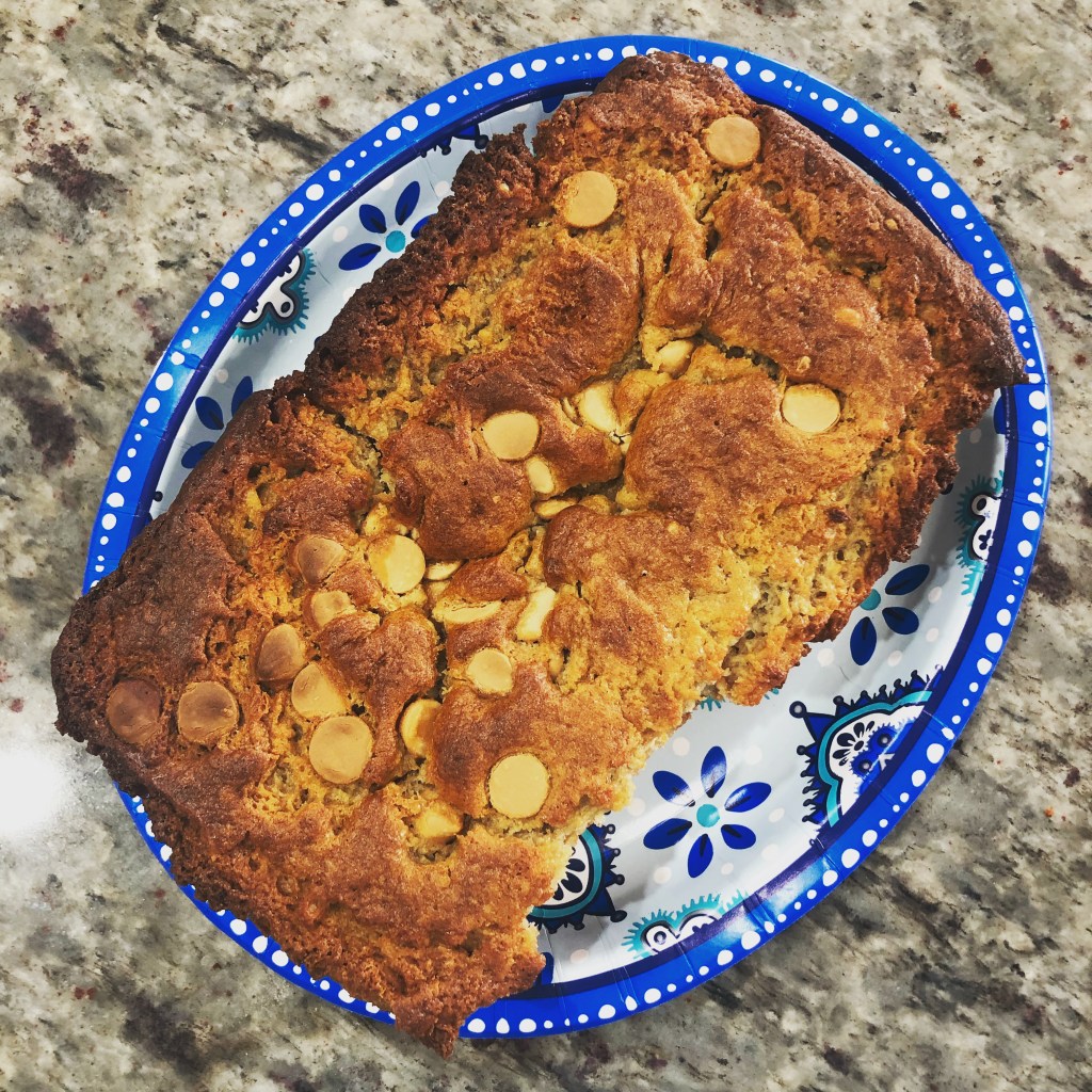 4 Pour batter into prepared pan(s), top with additional nuts or chips, and bake for 50 – 60 minutes or until toothpick comes out clean. Allow to cool in pan 10 minutes before removing to cool completely.