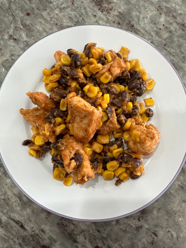 This was a really quick and easy one pot dinner. You could serve it as is or wrap it in tortillas or make a salad out of it, whatever your family likes.