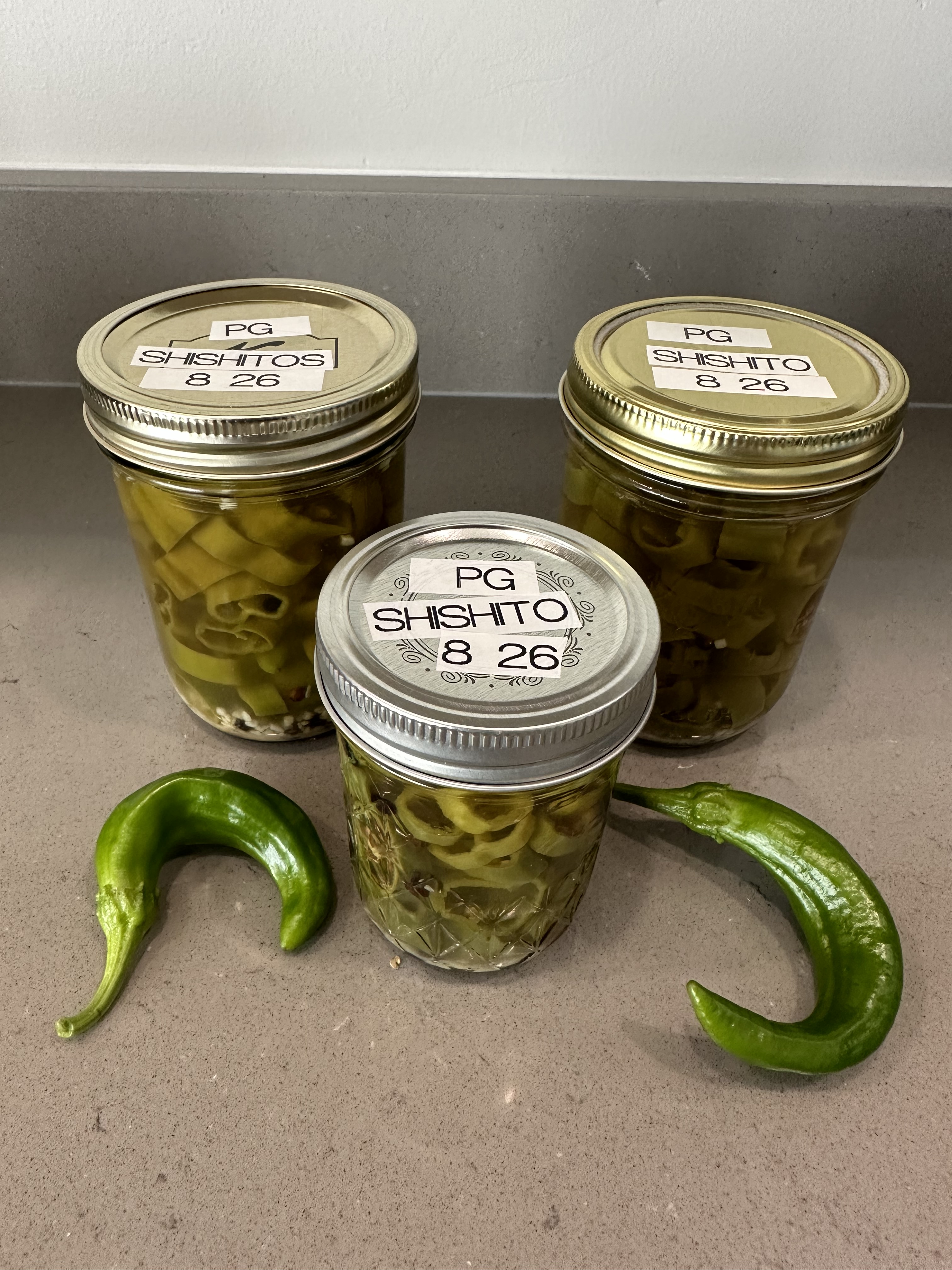 We have these Shishito peppers in our garden as well as the jalapenos. These aren’t as hot as the jalapenos. I found this Pepper Geek website and I really like the way they pickle peppers, so easy.