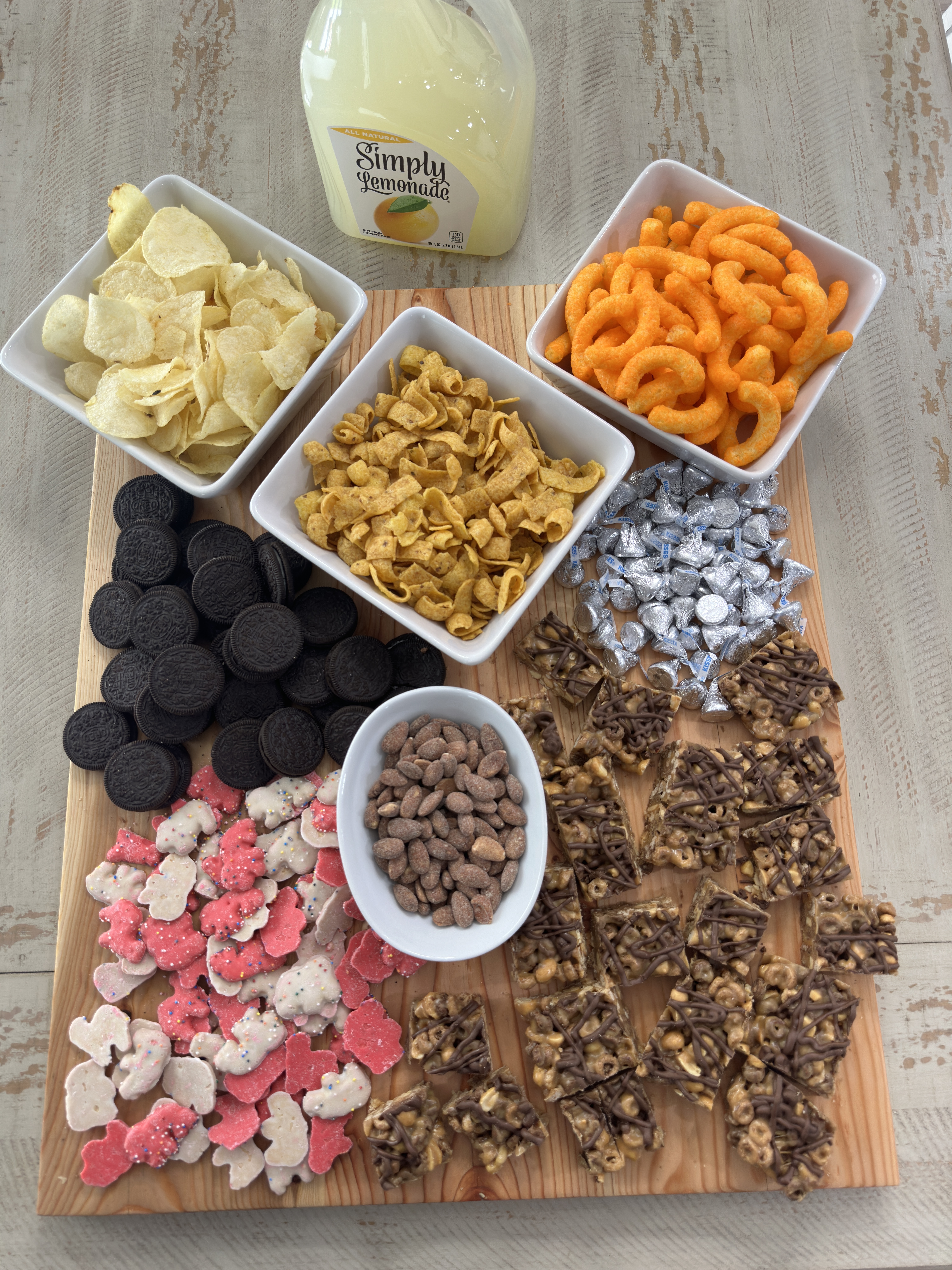 I hosted Book Group at my house the other night and we always have a treat after discussing the book so I decided to make a charcuterie board with some of the food that was mentioned in the book that we read which was “When You Reach Me” by Rebecca Stead. It was a really good book and we had a great discussion about it. I tweeked some of the food from the book to liven it up a bit. So, here we go!