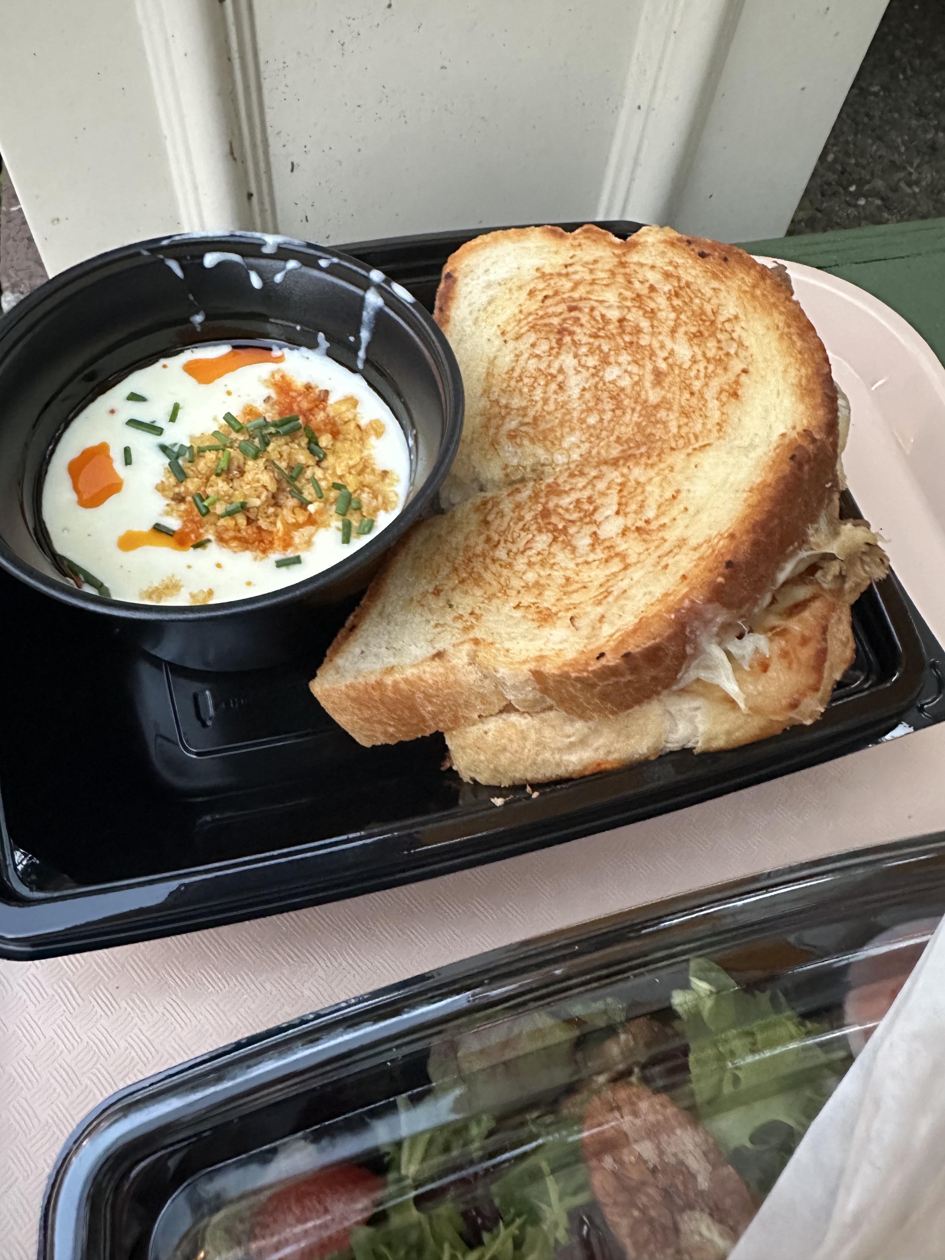 Courtney had a Boo-Gogi Beef Sandwich with Cheese Corn Soup and said both were quite yummy.
