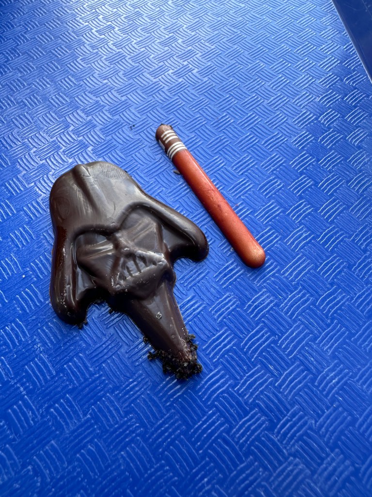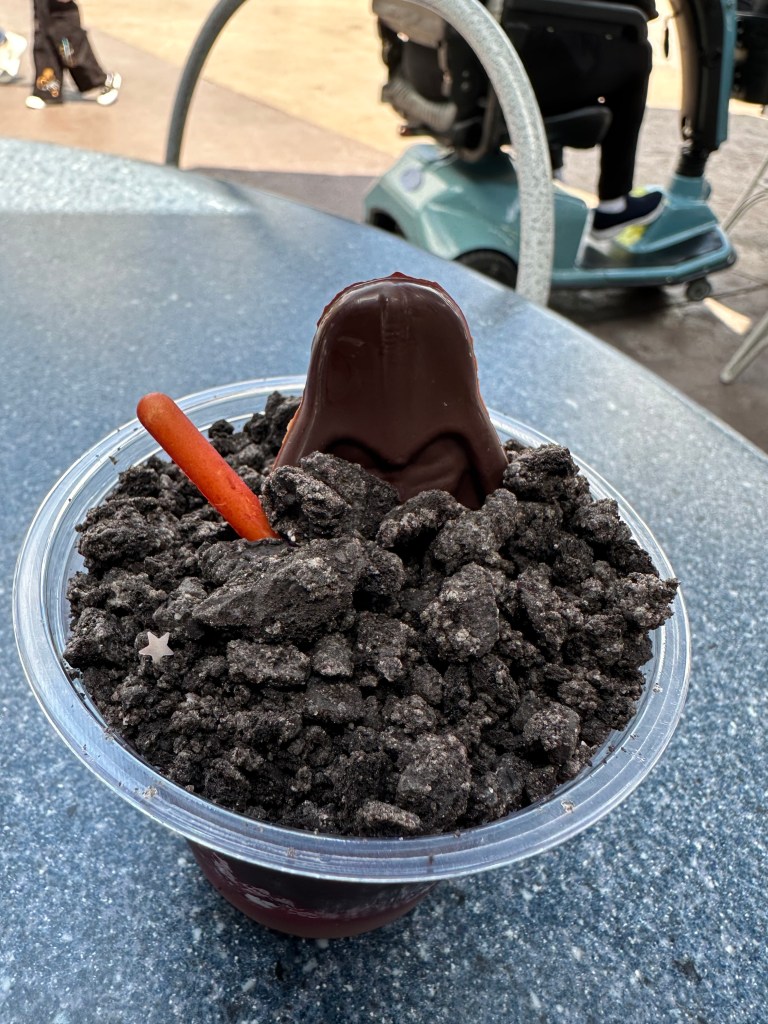 She also got this Darth By Chocolate for dessert. It was ok, not great but not terrible either. It was basically chocolate pudding with crumbled up Oreo Cookies. It did have cute edible decorations. Here’s a closer look at those.