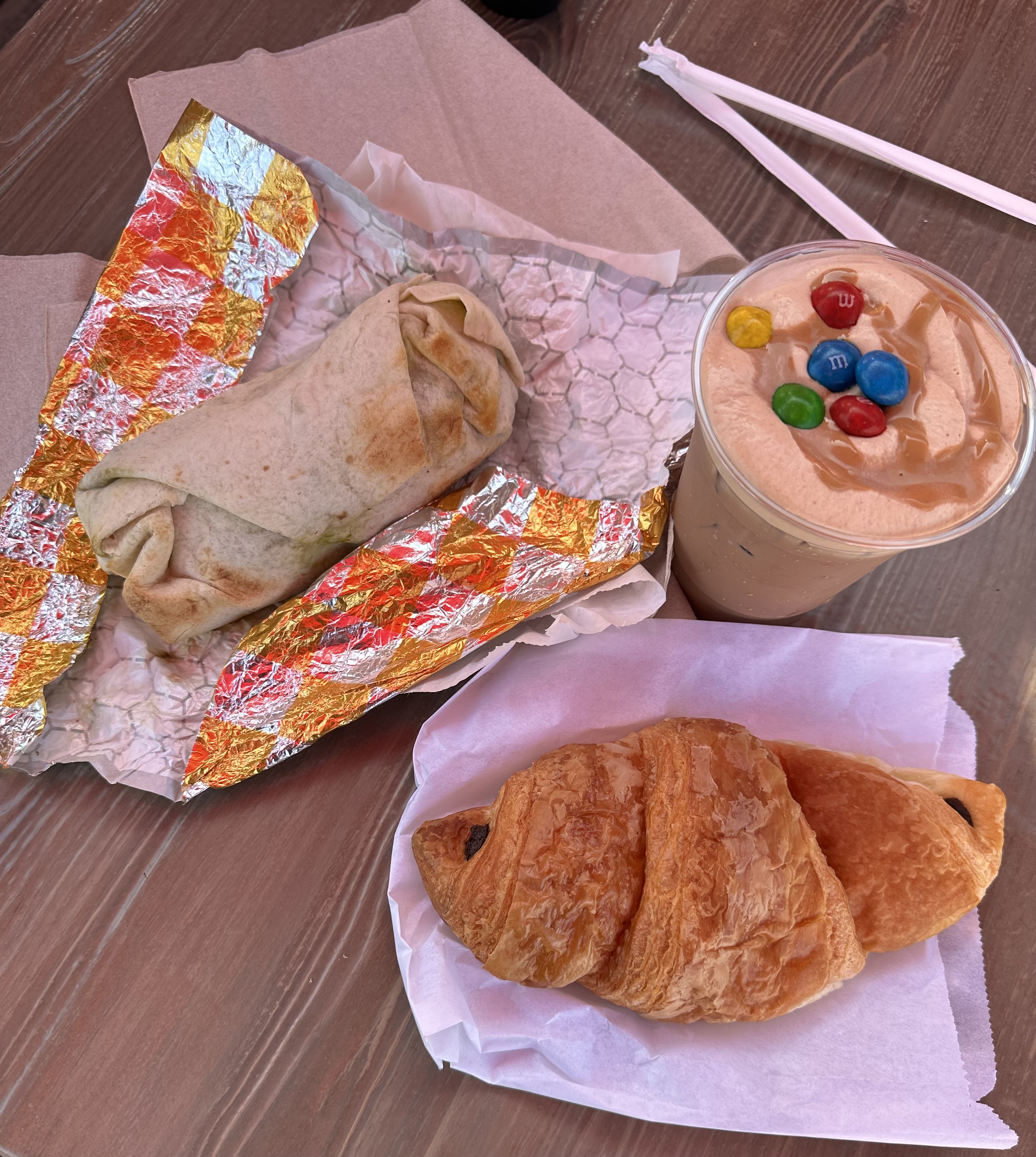 On day 3, we headed in to Disney California Adventures. We almost always eat breakfast at the Coffee Cart which is right across from The Little Mermaid ride. Courtney always gets this massive breakfast burrito and I always get a chocolate croissant. We tried the Peanut Butter Cold Brew which Cort didn’t really care for but I think drank most of it so pretty good.