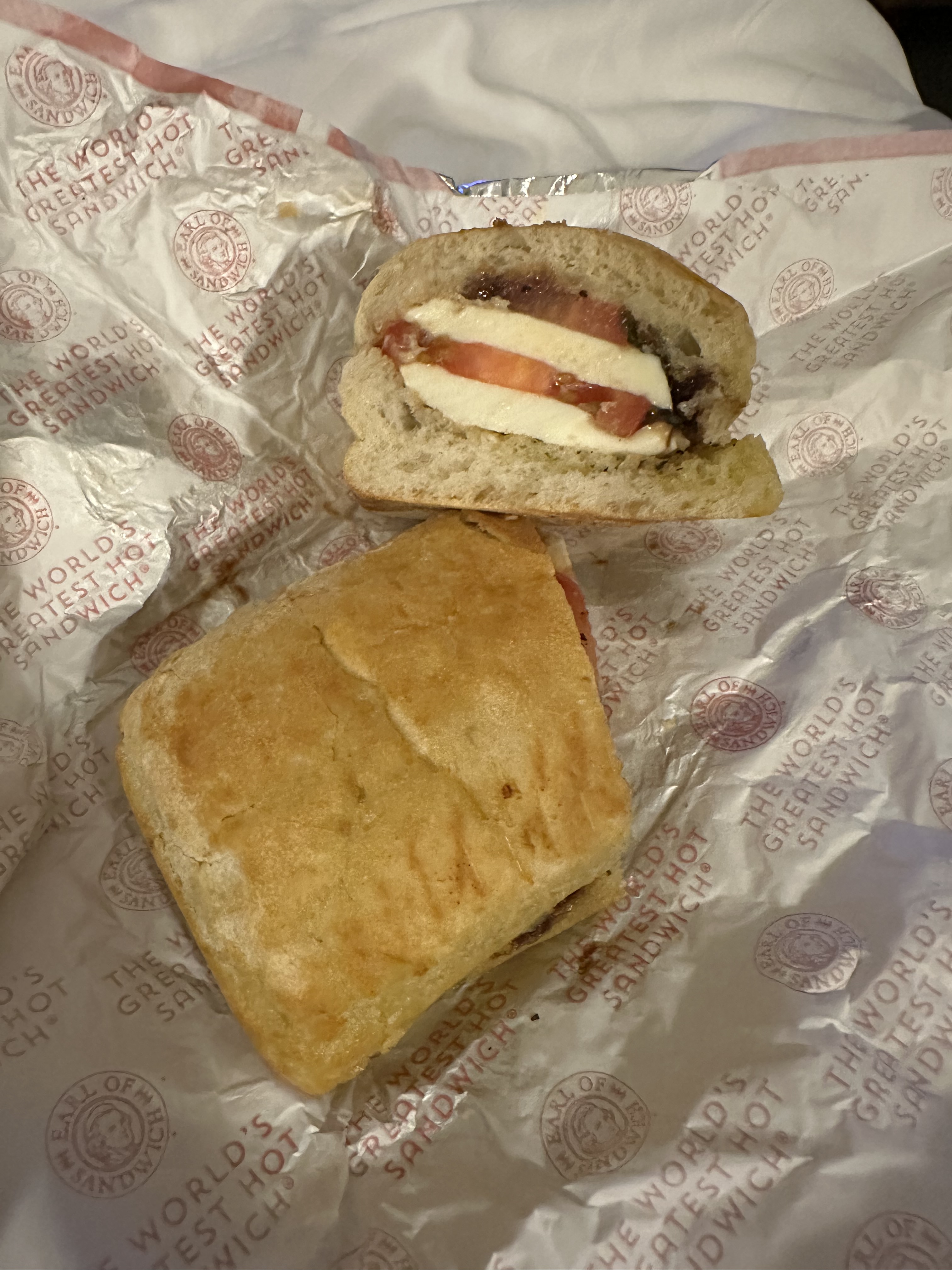 I grabbed this Caprese Sandwich from The Earl of Sandwich in Downtown Disney which is one of the best Caprese Sandwiches I have ever had! and Cort grabbed a smoothie from Jamba Juice in DD and we headed back to our room for some air conditioning and a rest.