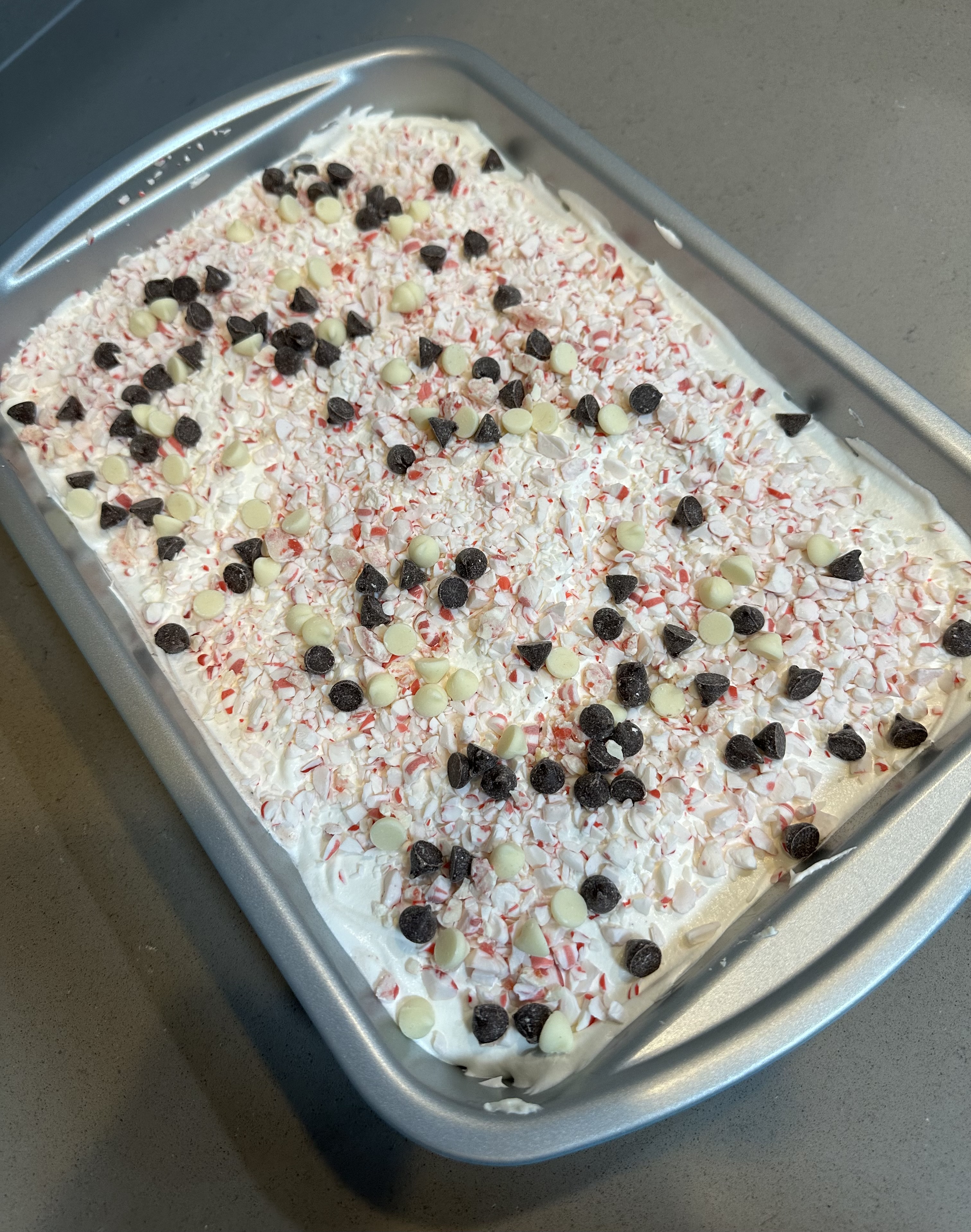 2 Sprinkle with crushed peppermints and mini chocolate chips.