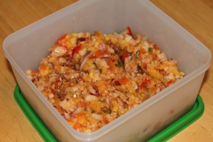 I got this recipe from the website http://www.food.com after googling shredded chicken. It really is tasty and easy! I was going to take a picture of my burrito that I made with the chicken but I was so hungry that I forgot so here is a picture of the leftovers! 🙂
